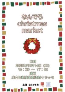 12月14日(日)10時30分から17時まで、庄内町新産業創造館クラッセにて、なんでろChristmas marketが開催されます。今年最後のなんでろ市です。美味しいもの、ワークショップなどなど素敵なものが勢ぞろいです。