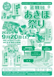 9月20日(土)午前10時から午後2時まで、日本海総合病院エントラスホール等で、あきほ祭りが開催されます。バザーや縁日、ダンスパフォーマンスなど盛りだくさんです!お子さんと一緒に行ってみませんか??