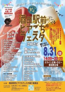 8月31日(日)午後2時から午後8時まで、ミライニ広場・ロビー、酒田駅前広場で、酒田駅前イベント史上最大規模の出店数の「酒田駅前ビアごちフェスタ2025」が開催されます。スタンプラリーやお楽しみ抽選会もあります!親子で楽しめるイベントです!